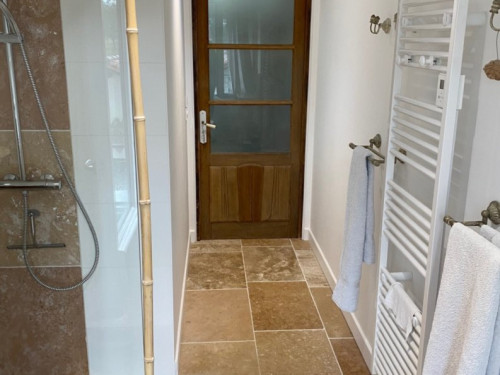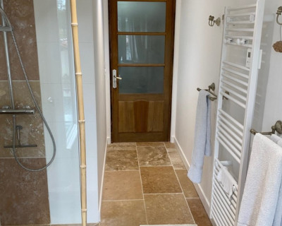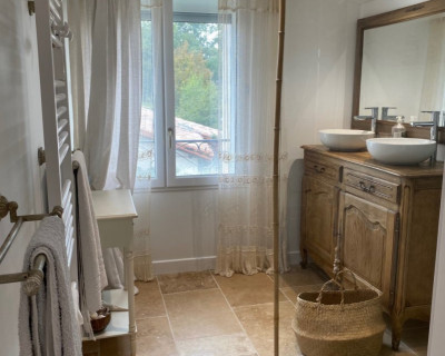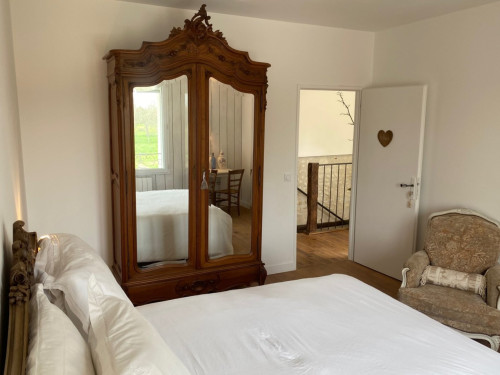 Bâtisse familiale du 18° siècle de 120m², totalement rénovée et dédiée aux hôtes, avec plancher chauffant et isolation extérieure garantissant confort thermique.