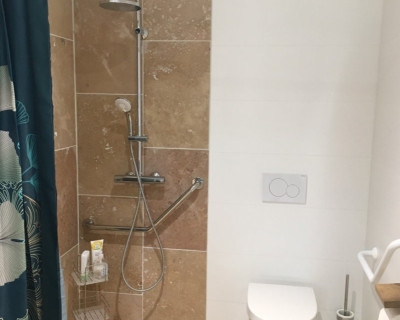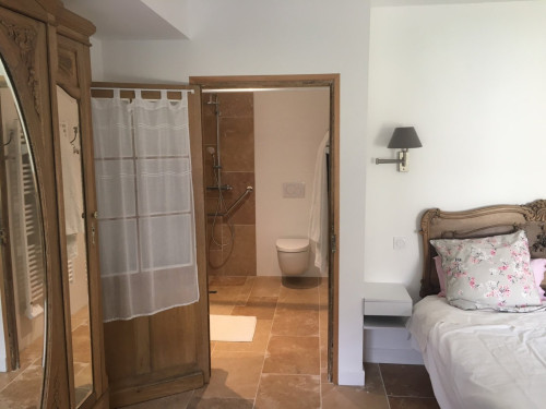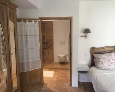Si vous louez les 3 chambres, la maison vous est entièrement dédiée avec son RDC PMR: espace cuisine , repas, TV salon, une chambre avec accès direct extérieur SdDouche italienne WC privés , lit 160 , WC visiteurs avec lave mains.