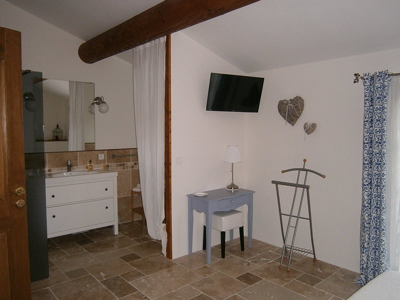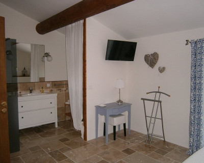 Toutes nos chambres sont situées à l'étage et pour le confort de nos hôtes, nos chambres spacieuses (minimum 20 m²) sont équipées d'une literie en 180x200 à mémoire de forme, d'une salle de douche avec WC privatif, d'une télévision écran plat.