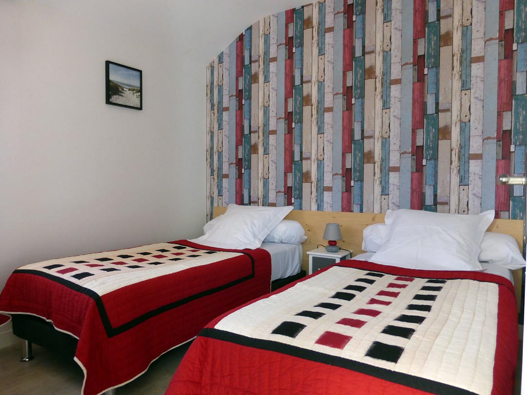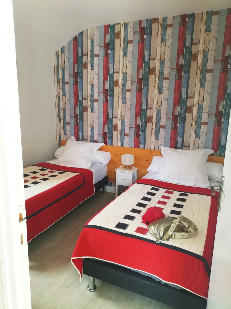 Nous disposons d'une chambre "famille" qui peut accueillir 5 personnes. Elle est composée de 2 chambres séparées par une salle de bain.