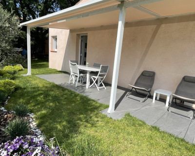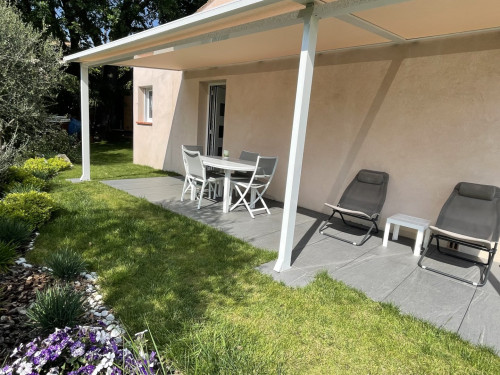 La terrasse privée du Studio est équipée d'un BBQ Weber, d'une table et chaises de jardin.