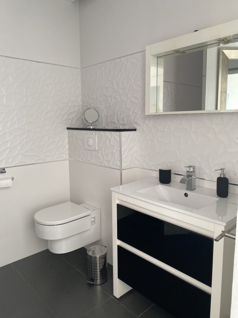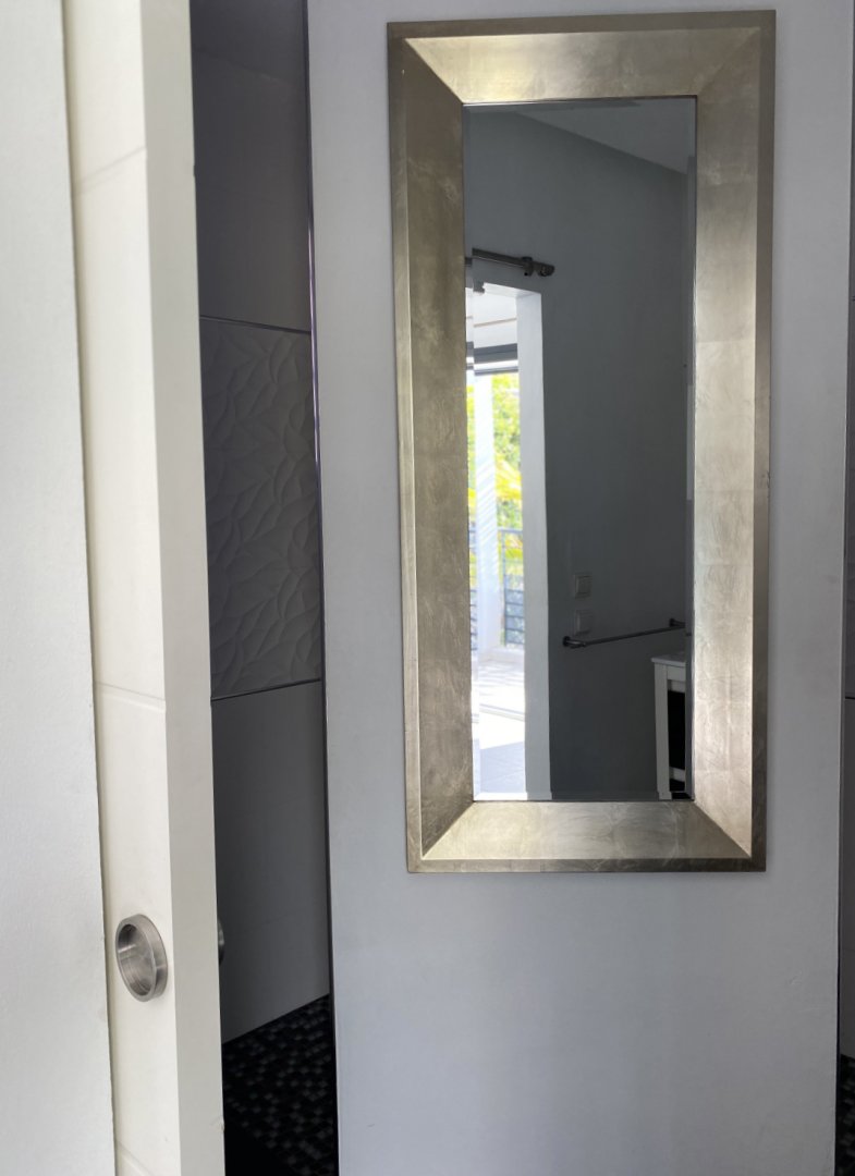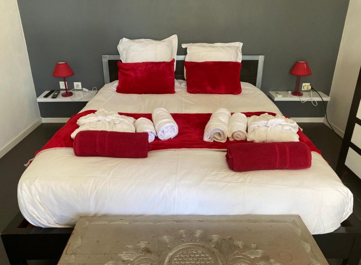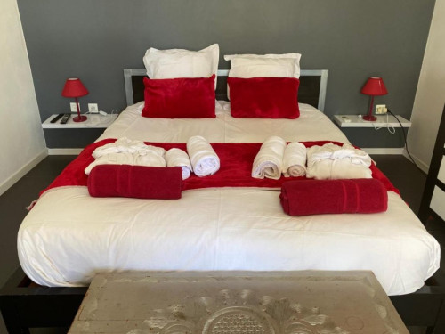 Vos chambres sont équipées d’un lit double de 160X200, une salle de bain décorée dans les tons blanc, gris, noir et argent avec de la mosaïque et de la faïence italiennes, des toilettes suspendues, un meuble vasque en céramique ainsi qu'un grand miroir.