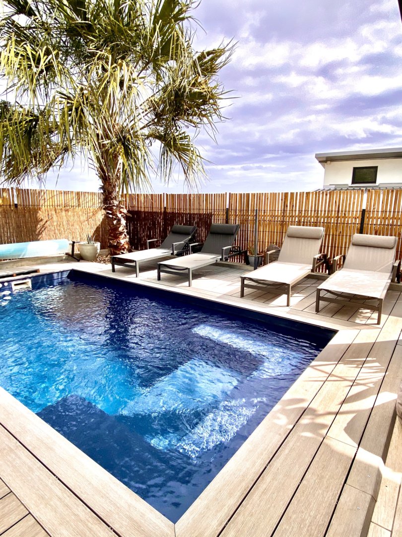 Envie d’un peu de fraîcheur ? Vous avez à votre disposition la piscine jusqu’au coucher du soleil. Vous pourrez même vous y asseoir un verre à la main.