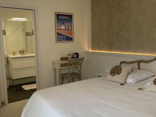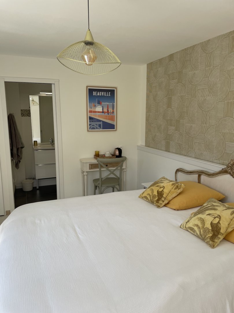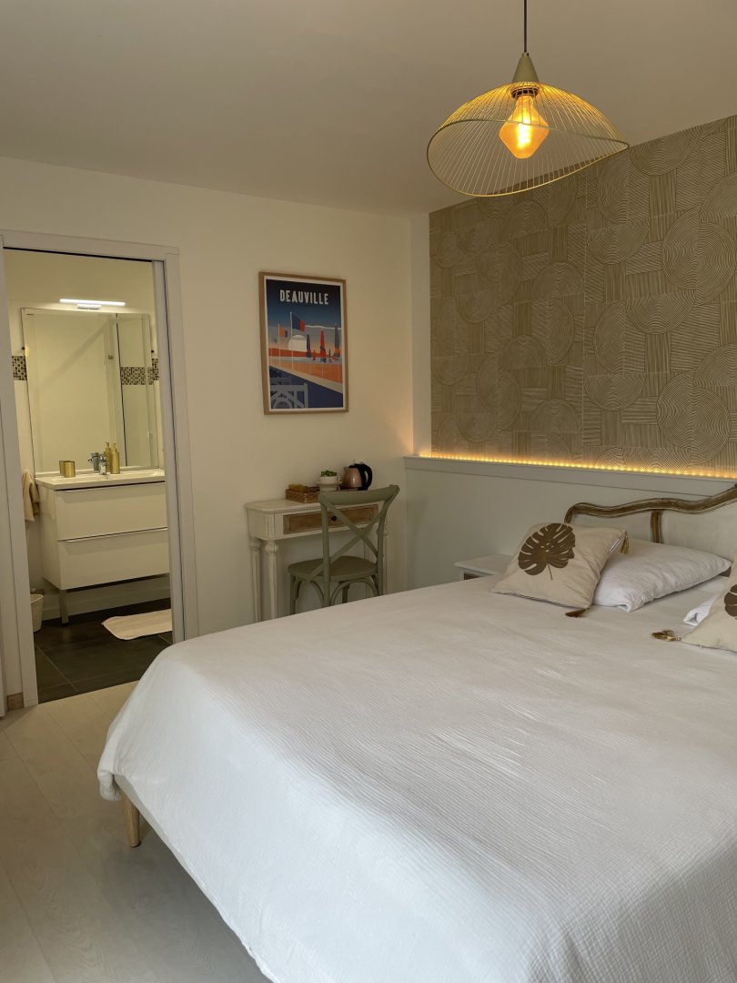 Nous avons réservé la chambre appelée Merville mais nous avons également visité la chambre nommée Cabourg, qui est tout aussi bien.