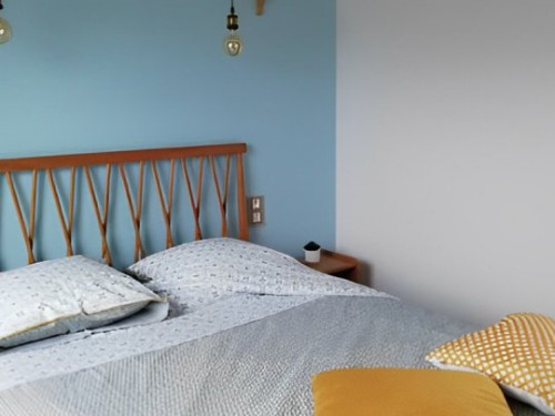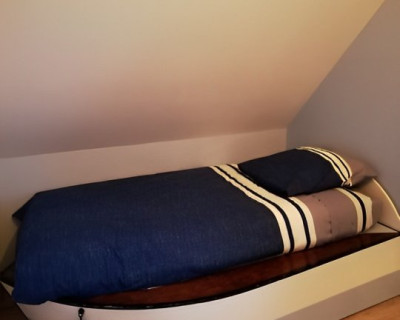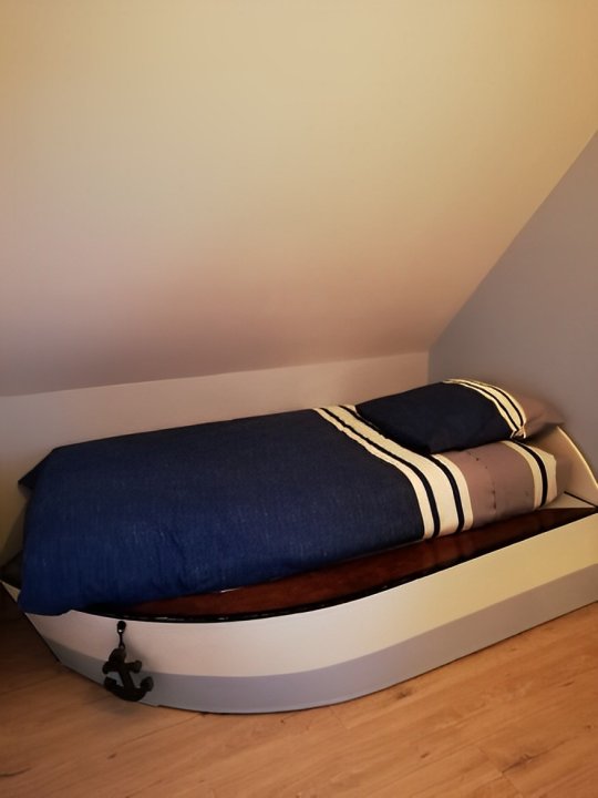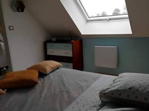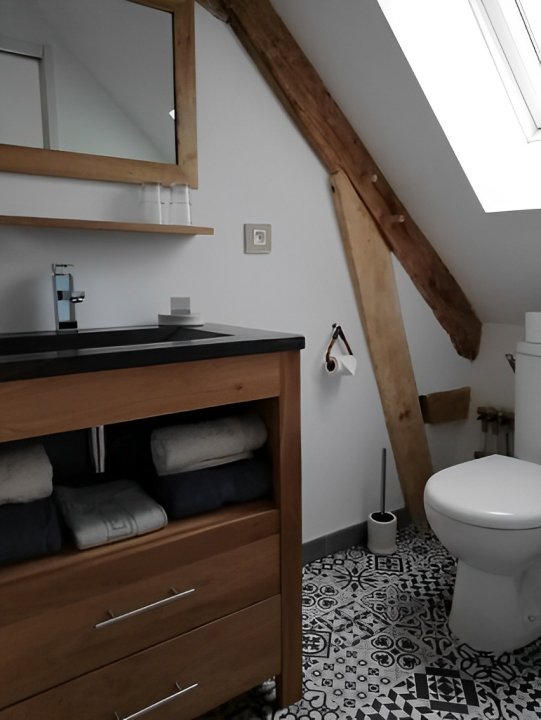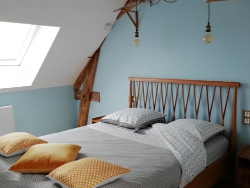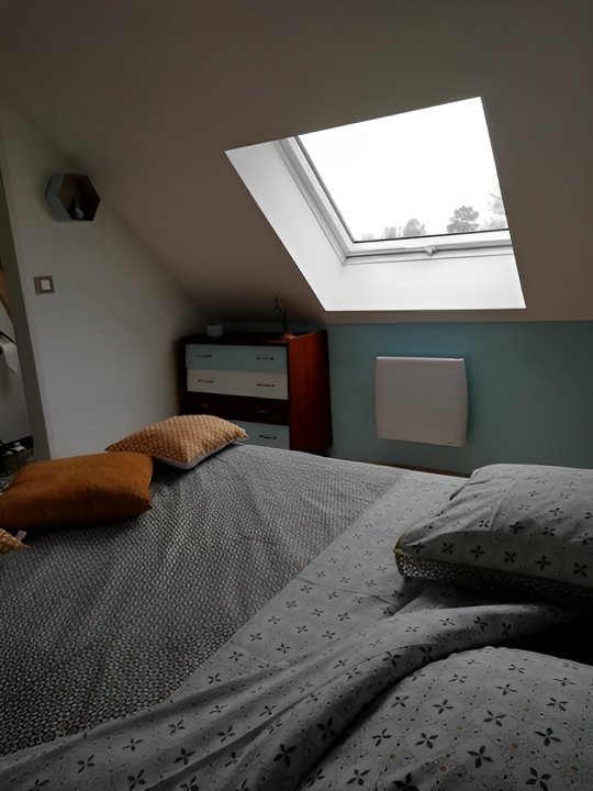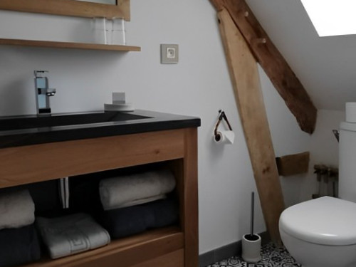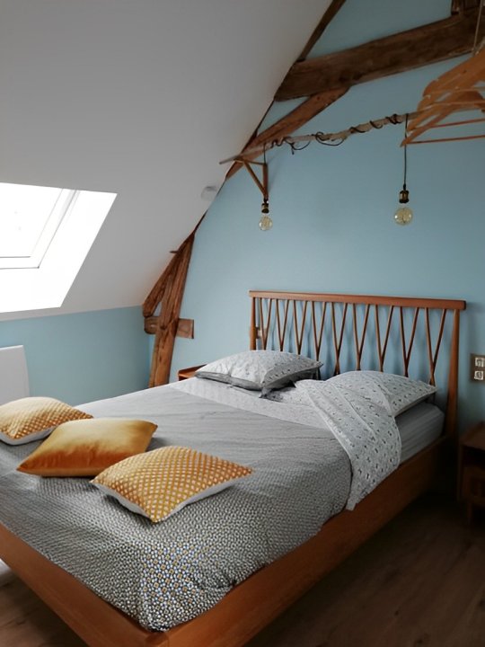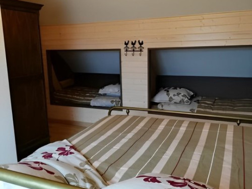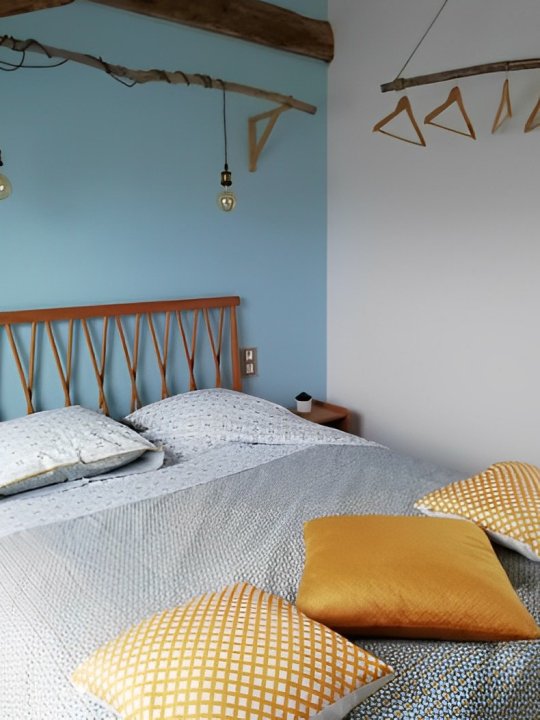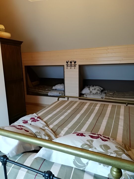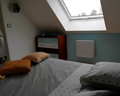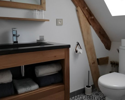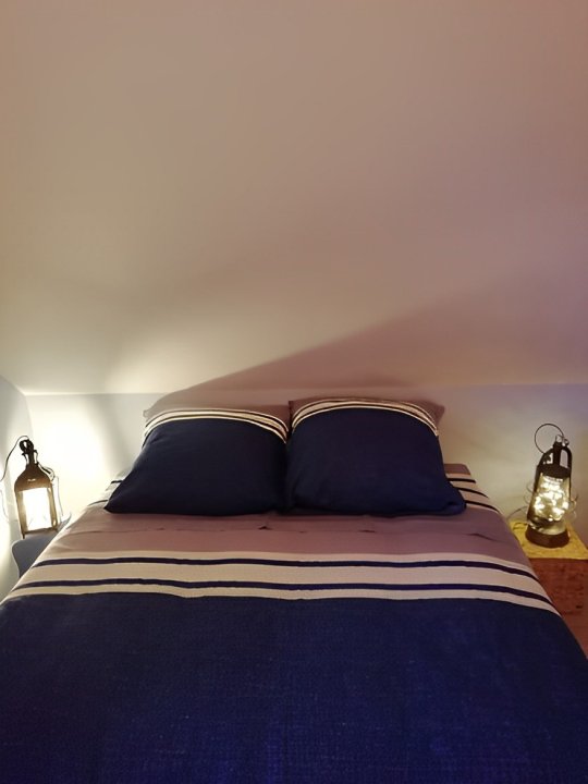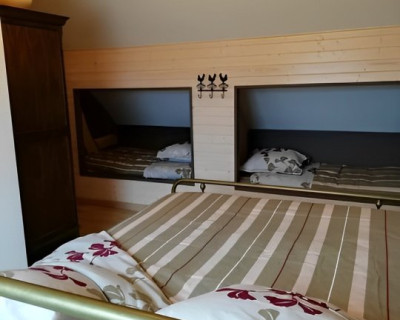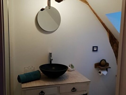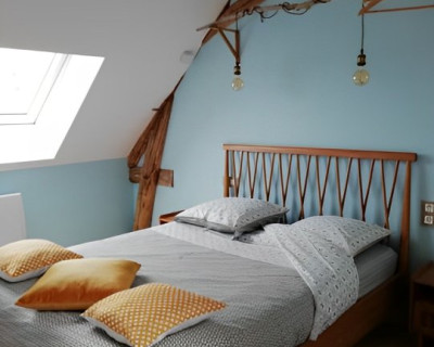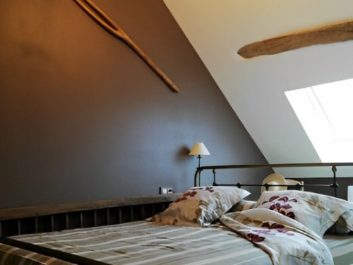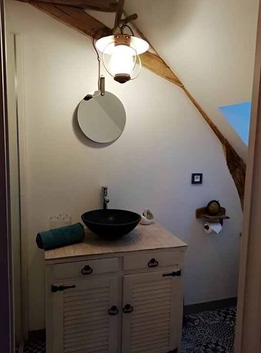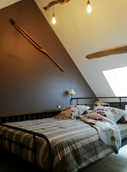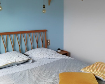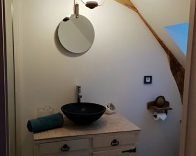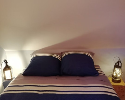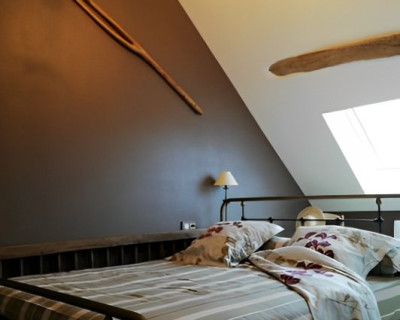 Cette suite familiale, accessible par un petit escalier en pierres (8 marches), est composée de 2 niveaux (1 lit 140 au 1er niveau et 1 lit de 140 situé en mezzanine, accessible par un escalier en bois, offrant un espace cocoon), salle d'eau et WC.