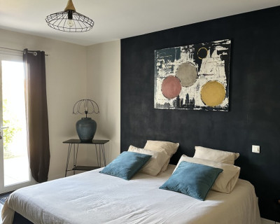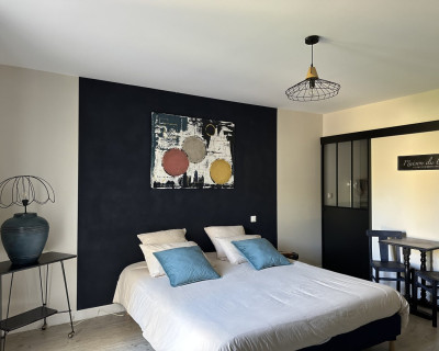 La suite parentale de 25 m² avec son lit king size 180x200 (possibilité de 2 lits de 90x200), une salle de bain (douche italienne, double vasque) et WC séparé.