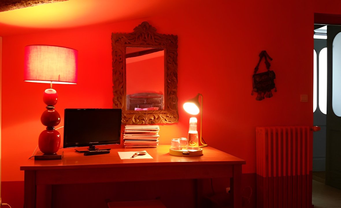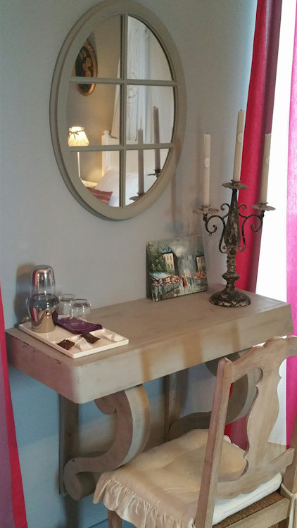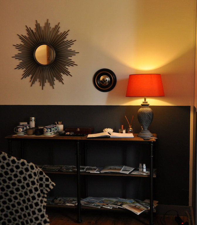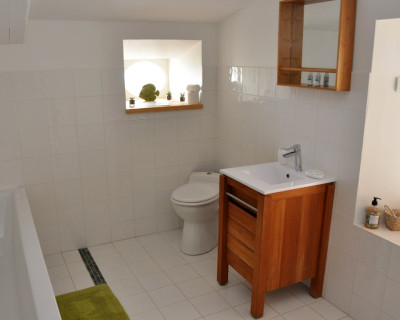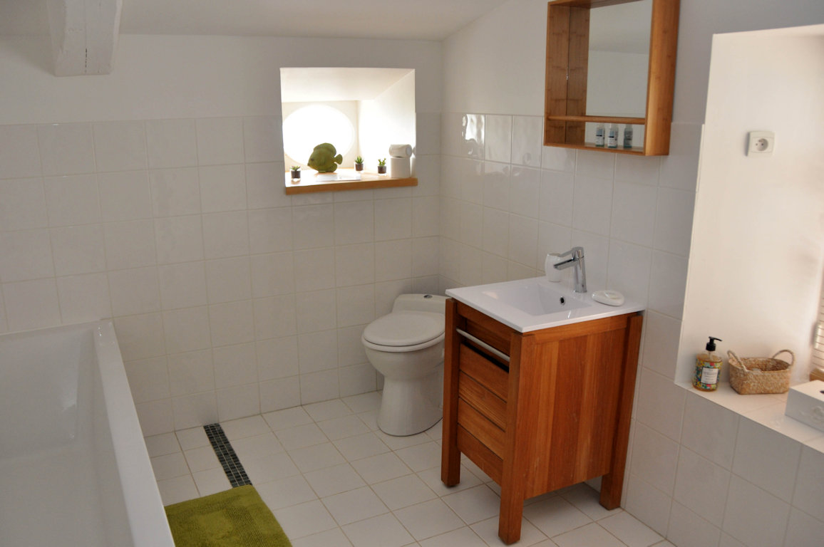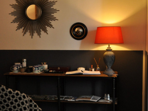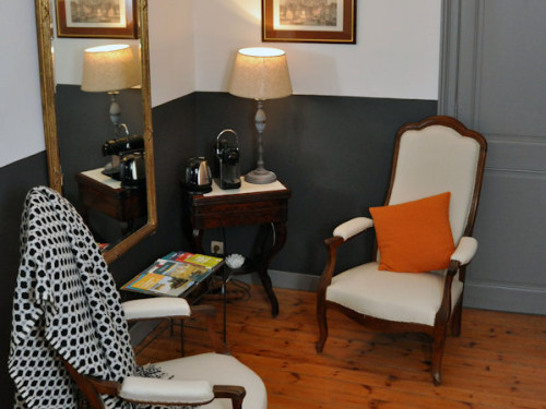 Cette très grande chambre mêle élégamment le charme des beaux meubles cirés aux objets design. Elle vous offre tout le confort que vous attendez pour un long séjour (mais rien ne vous empêche de n'y rester qu'une nuit…) Et vous trouverez sur le palier thés, café et tisanes pour un petit moment relax en feuilletant les documentations sur la Charente-Maritime mis à votre disposition.