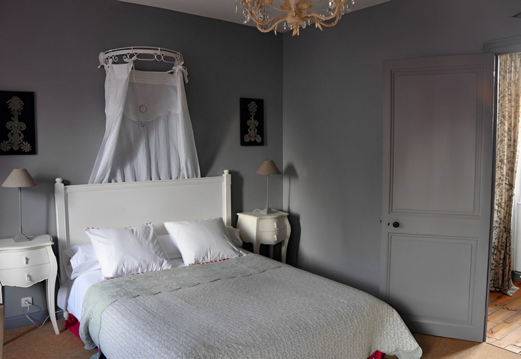 Harmonie de teintes douces, meubles et linge de lit anciens créent une atmosphère propice à la détente.