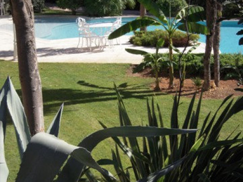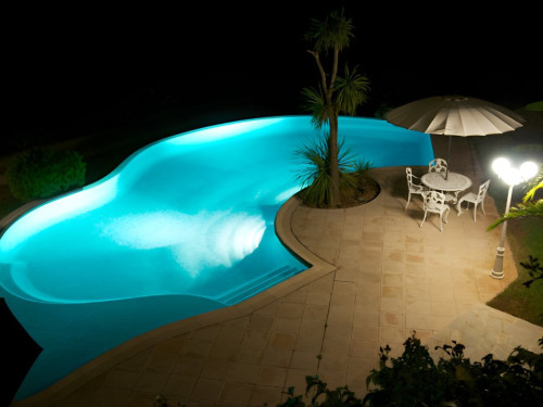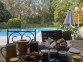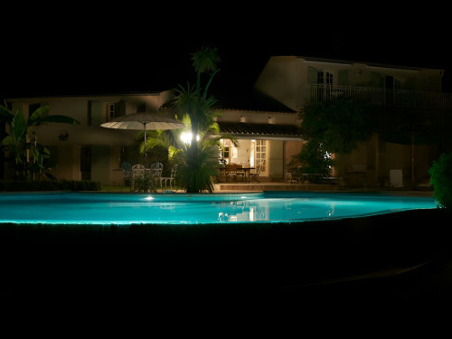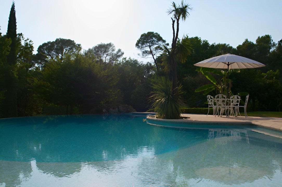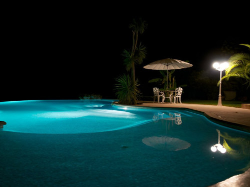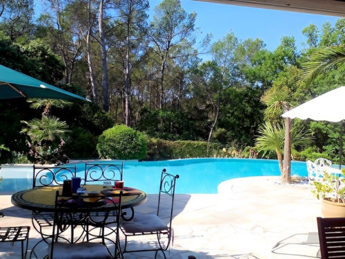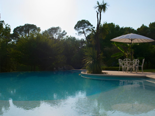 Sa piscine à débordement est idéalement située, au milieu du jardin où l'ensoleillement est le plus agréable, juste devant la terrasse. A noter que l'eau de la piscine n'est pas chauffée, la température dépend donc du climat de la période de location.