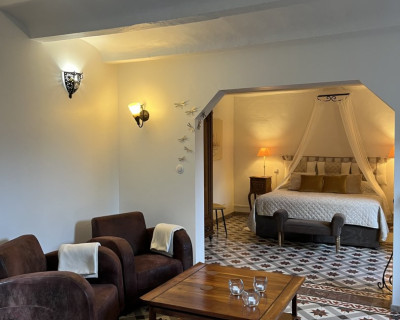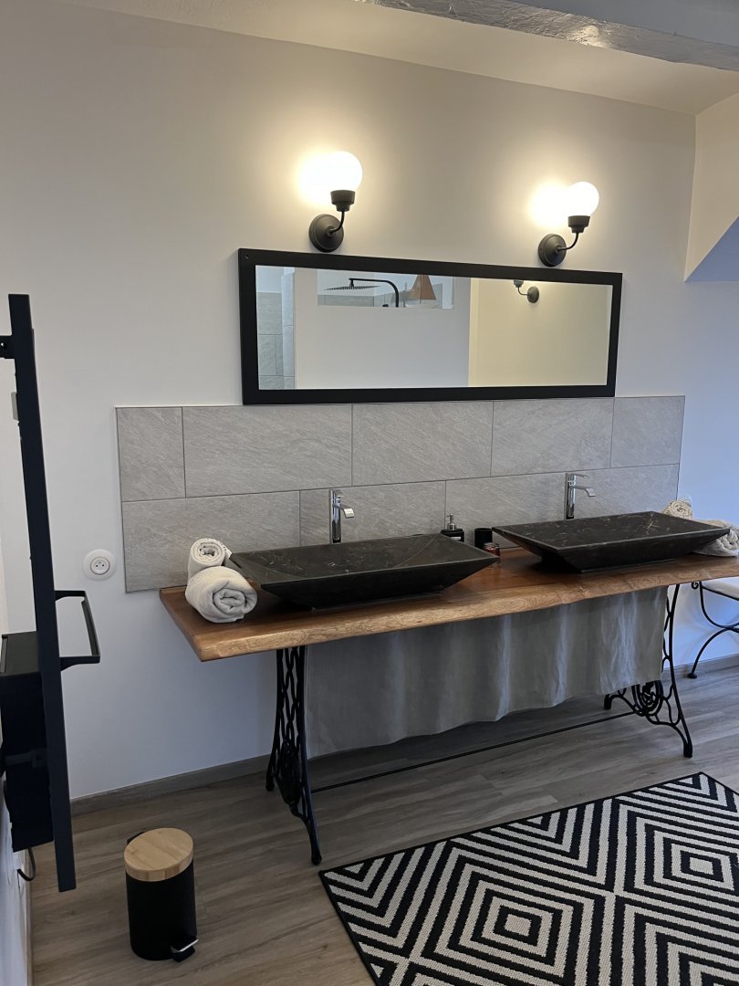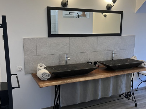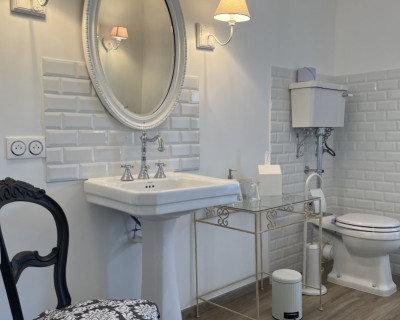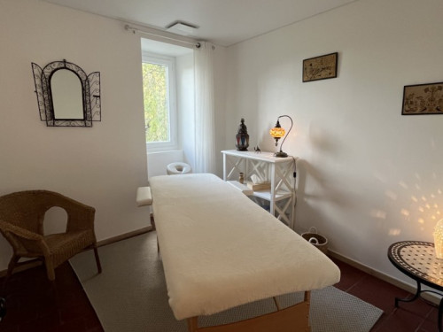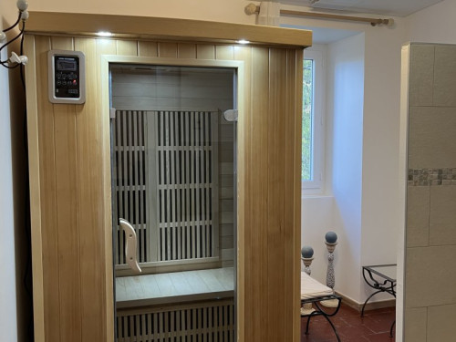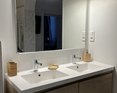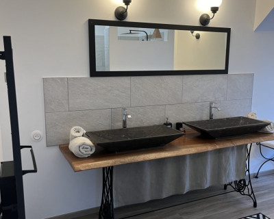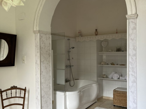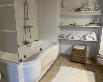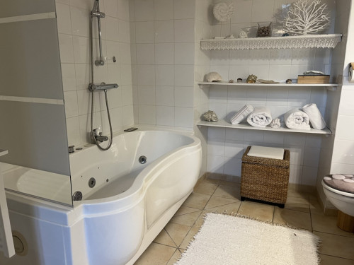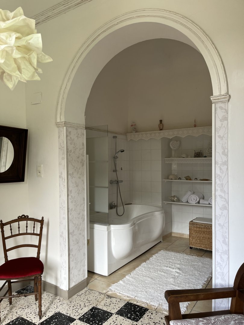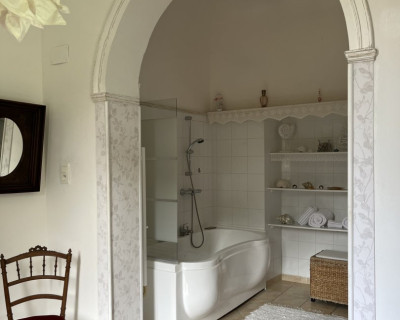 Elle est unique par ses hauts plafonds voutés, sa baignoire balnéo et sa superficie de 38m2.
