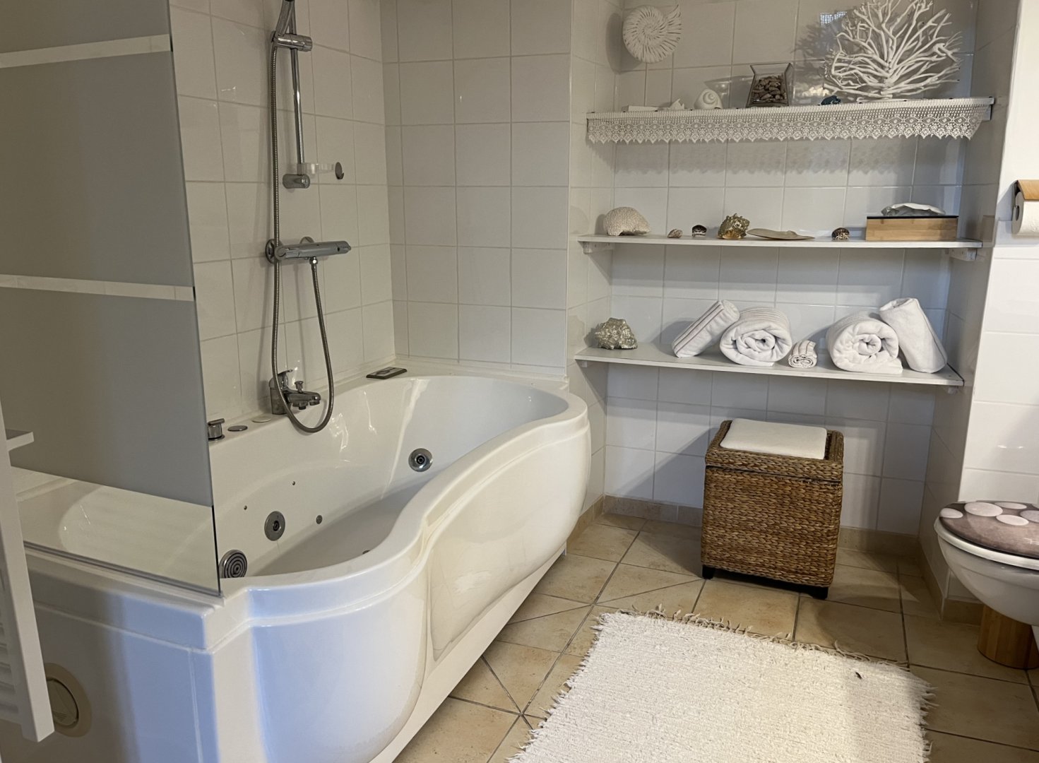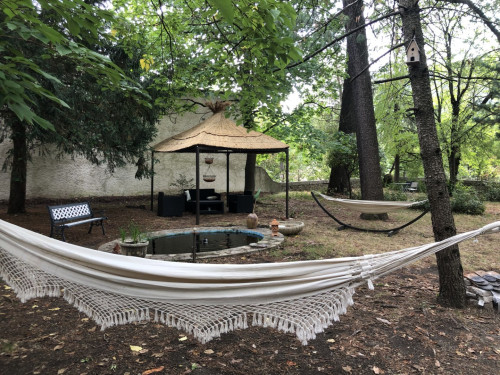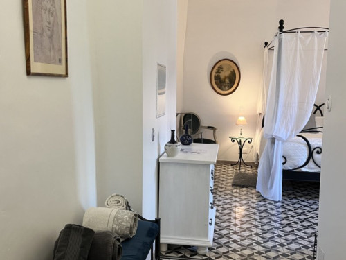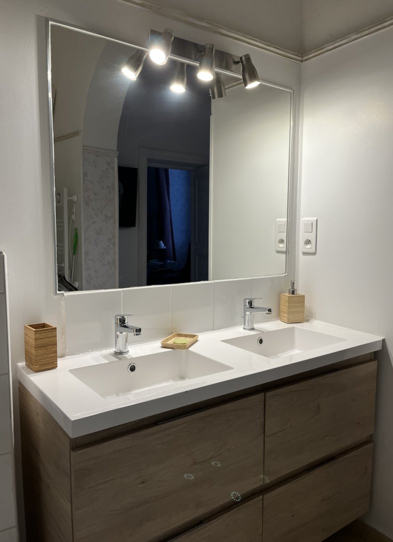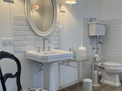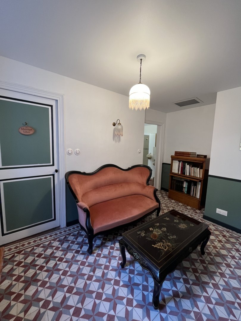 Elle est unique par ses hauts plafonds voutés, sa baignoire balnéo et sa superficie de 38m2.