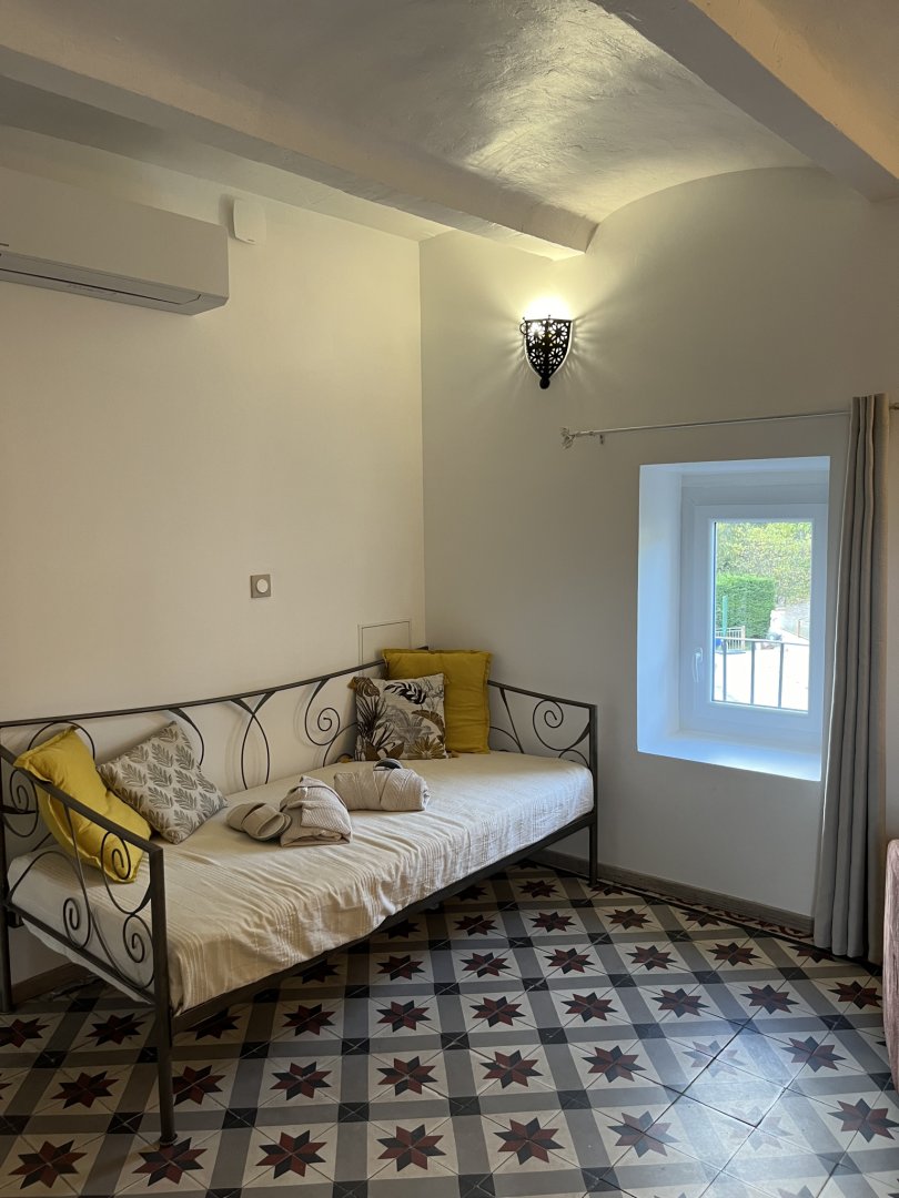 Pour votre confort, elle est équipée d'un lit queen size 160cm, matelas avec mousse à mémoire de forme, TV avec canal + et netflix.