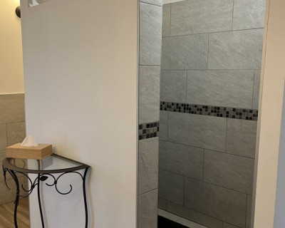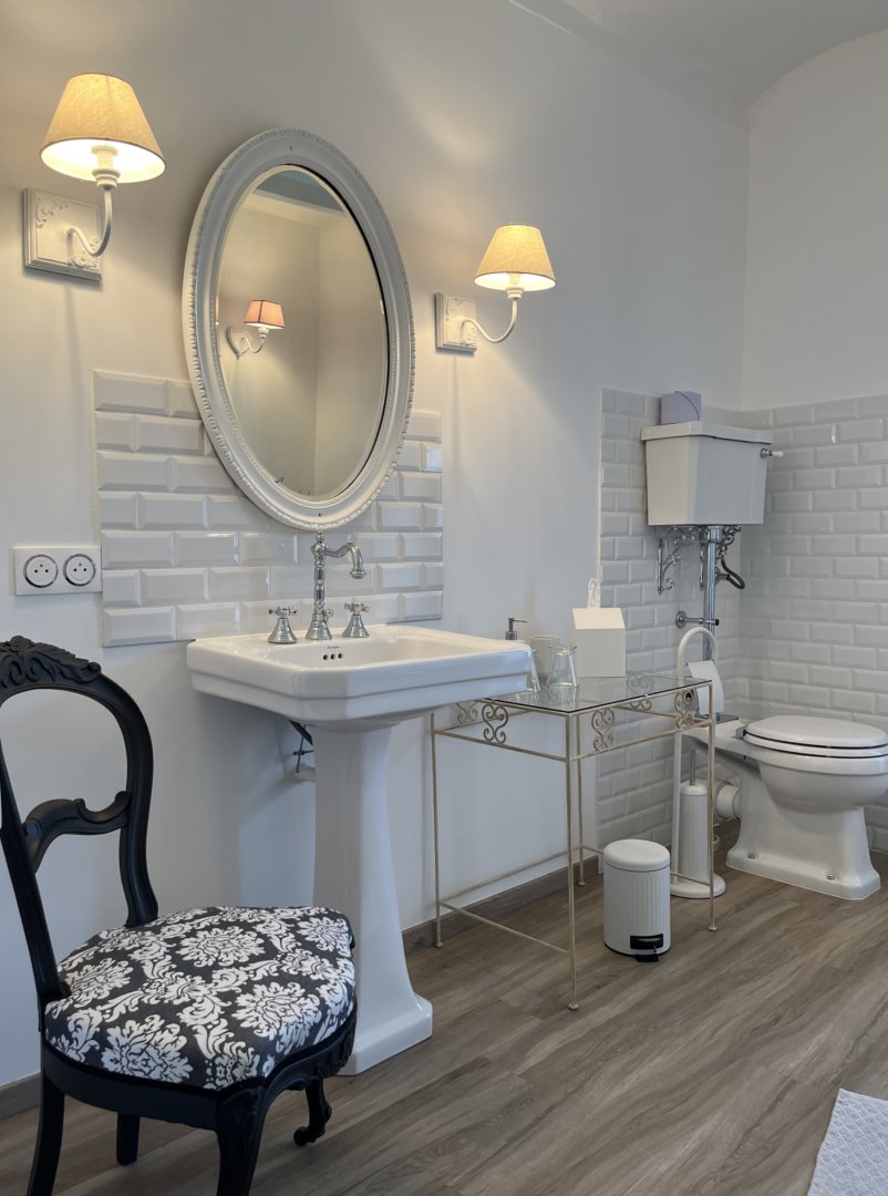 Sa salle de bain attenante donne un accès direct à la grande terrasse, et à sa partie privée.