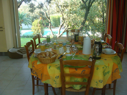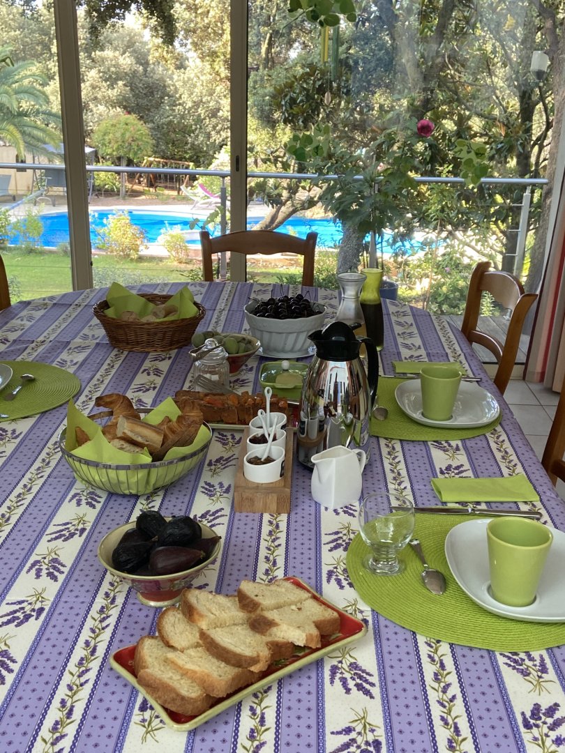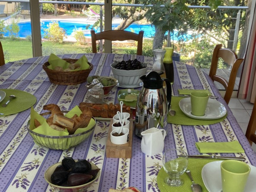 Le petit-déjeuner est constitué essentiellement d'aliments bio et de gourmandises faites maison. C'est un moment convivial où nous prenons le temps de converser avec vous et de vous aider à organiser votre journée. Nos hôtes peuvent en outre dîner à notre table, sur réservation.