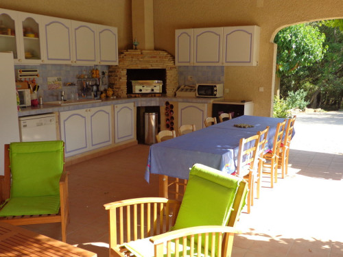 À votre disposition : piscine paysagée (12 x 7 m) avec plage pour les jeunes enfants, Spa extérieur, sauna avec douche, vaste cuisine d'été et salon, boulodrome, portique, aire de jeux pour les enfants dans le sous-bois, table de ping-pong.