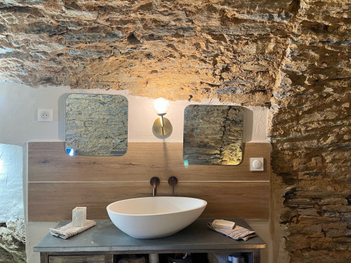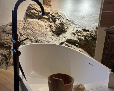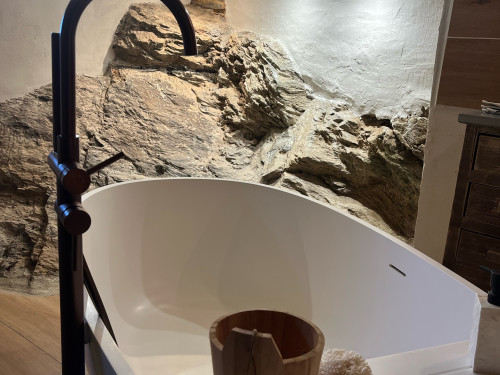 Pour un moment bien-être à 2, la grande salle de bain et la baignoire participeront à votre détente, ainsi que le calme et la vue sur le jardin et la montagne.