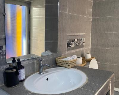 Vous trouverez une salle de bains privative avec un bidet et des articles de toilette gratuits dans chaque logement, tout comme un sèche-cheveux.