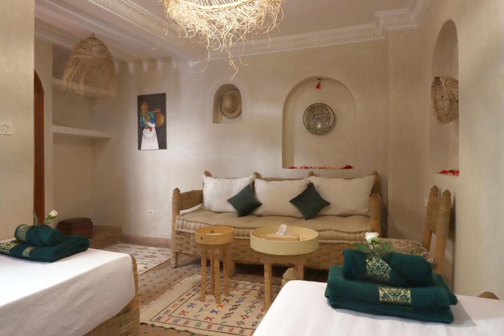 Dotées d'une décoration traditionnelle, toutes les chambres climatisées du Riad Venezia comprennent une salle de bains privative.