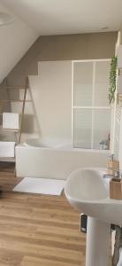 Vous bénéficierez d’une salle de bains commune entièrement équipée avec une douche et un sèche-cheveux.