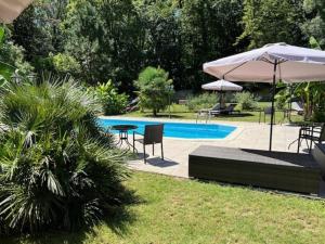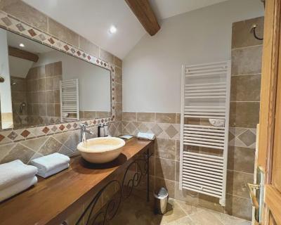 Les chambres du 1er étage présentent des poutres apparentes, du parquet et une salle de bains en pierre. Les chambres du rez-de-chaussée présentent une décoration méditerranéenne et un sol en pierre de Chassagne.