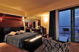 The luxurious, air-conditioned rooms come with seating areas and flat-screen TVs with satellite and Pay-per-view channels. Slippers and cosmetics are included. All balconies have excellent views of the sea.