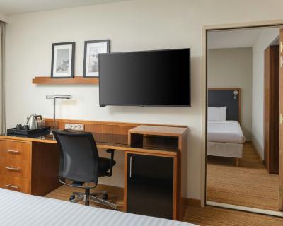 Courtyard By Marriott Toulouse Airport is just minutes from Toulouse Blagnac Airport and offers a seasonal outdoor heated swimming pool and free parking. It offers spacious and air-conditioned guest rooms. Toulouse Stadium is a 15-minute drive from the hotel.