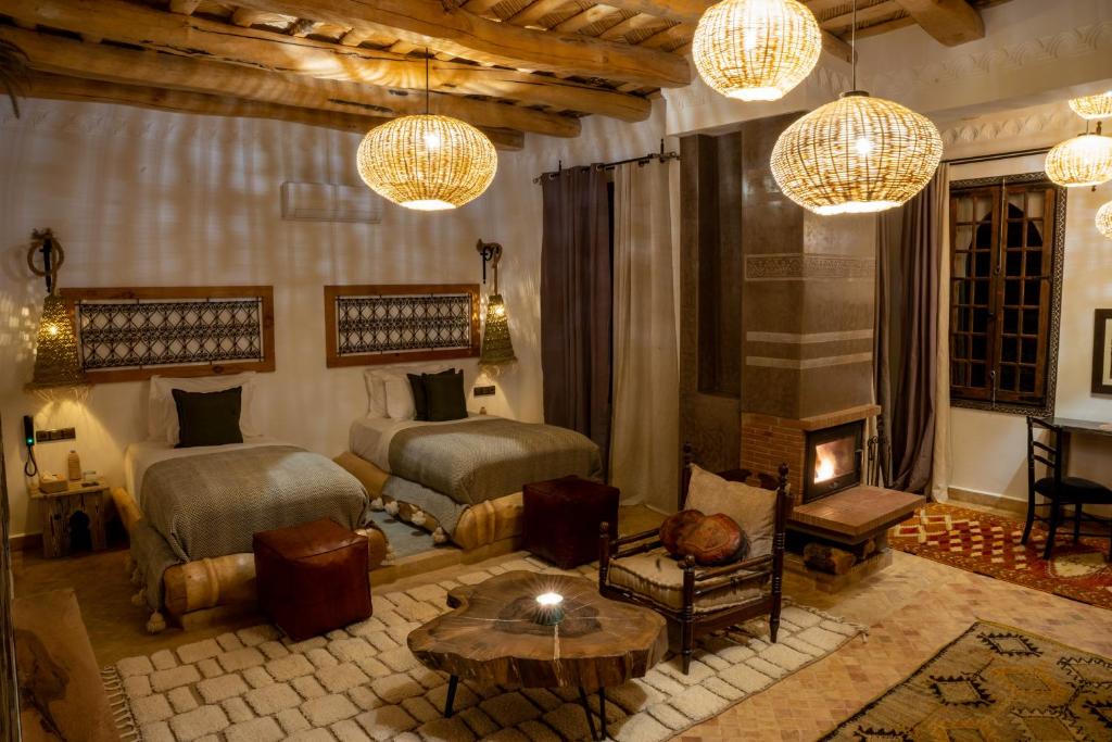 L'aéroport le plus proche (Aéroport de Ouarzazate) est à 125 km. Un service de navette aéroport payant peut être assuré par l’établissement.