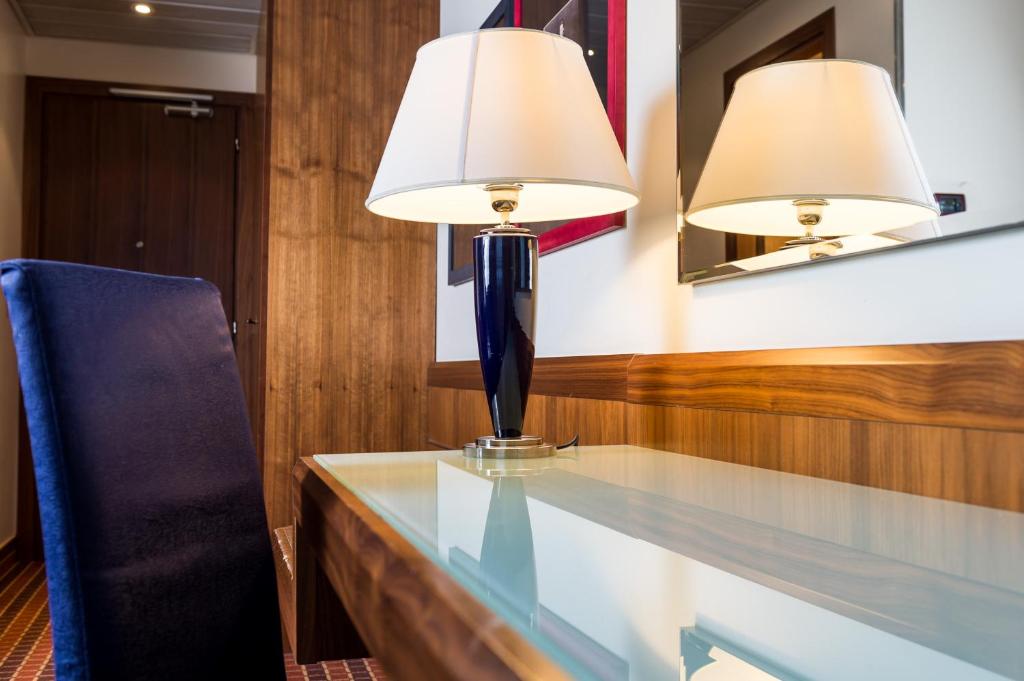Les chambres insonorisées de l'Hotel First comprennent toutes un mobilier moderne et des services incluant un minibar ainsi qu'une télévision avec des chaînes cinéma et football gratuites.
