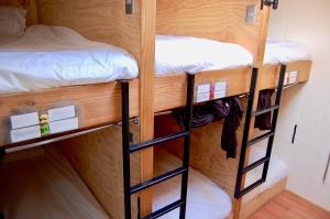 Les chambres disposent de parquet, du chauffage central et de linge de lit. L'établissement propose des chambres capsules de style japonais ainsi que plusieurs autres configurations d'hébergements. Certaines chambres sont munies d'une salle de bains privative, tandis que d'autres donnent accès à une salle de bains commune. Certains logements comprennent également des serviettes et une terrasse offrant une vue sur le jardin.