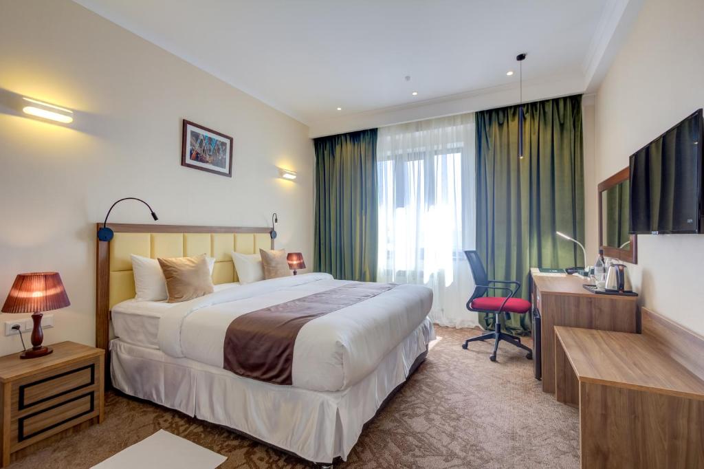 Situé à Bishkek, l’établissement Garden Hotel & SPA possède un salon commun, une terrasse, un restaurant et un bar. Tous les hébergements de cet hôtel 4 étoiles offrent une vue sur la ville. Vous pourrez profiter de l’accès à un hammam. L’établissement comprend une réception ouverte 24h/24, des transferts aéroport, un service d'étage et une connexion Wi-Fi gratuite dans l’ensemble de ses locaux.