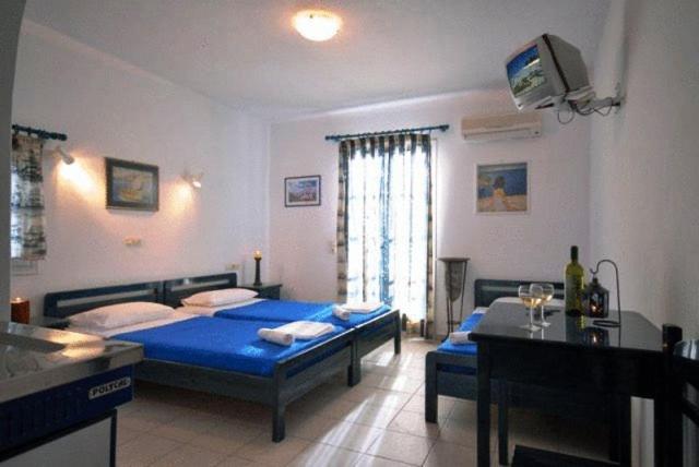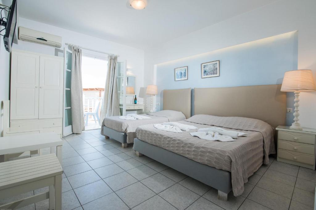 Lumineuses et spacieuses, les chambres du Georgia Mare sont décorées dans le style typique des Cyclades. Elles sont bien équipées avec une télévision par câble et la climatisation. Elles comprennent toutes un balcon, la plupart offrant une vue sur la mer Égée.