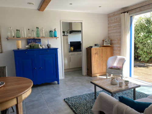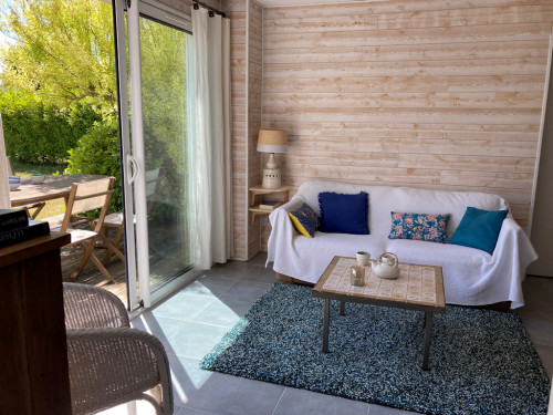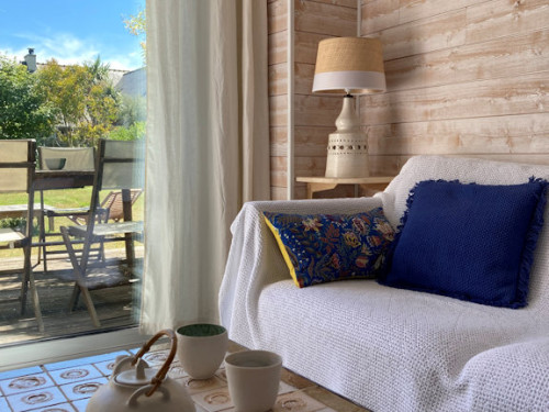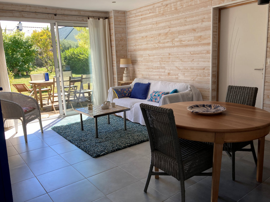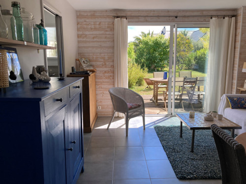 Plein sud, très lumineux, le séjour ouvre sur un joli jardin privé.