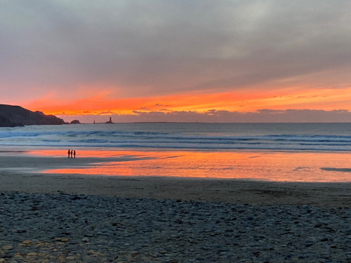 A 300 m de la mer d'Iroise et du GR 34, vous accédez d' un côté à la belle plage de Kersiny au sable blanc et fin pour les baignades, le surf, ou ramasser des bigorneaux pour l' apéritif à marée basse. De l' autre côté, vous longez le magnifique sentier côtier. Le spot de surf de la plage de Guendrez se situe à 4 km.