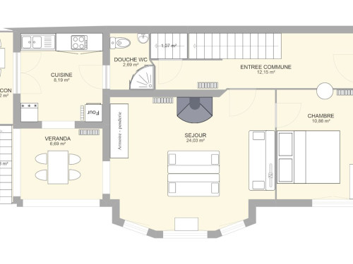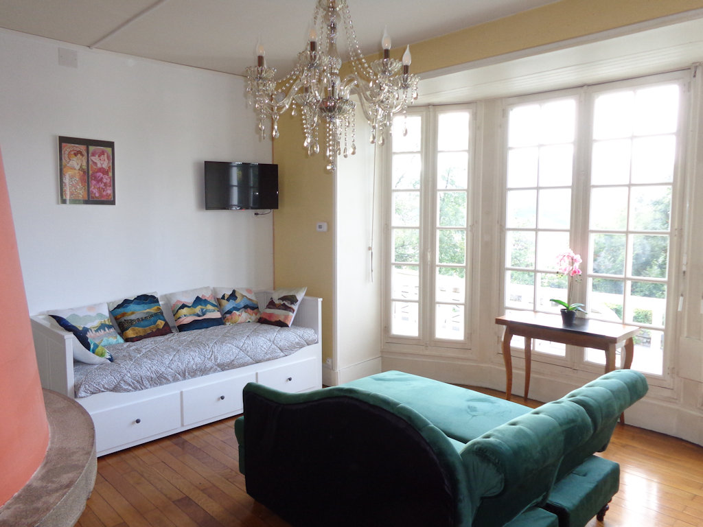 À La Belle Époque vous propose, proche des thermes d’Aix-les-Bains et du bois Vidal, dans une villa bourgeoise du début du XX° siècle (1926), face au château de la Roche du Roi, sept appartements de caractère du studio au vaste T2, 11 m²<>56 m². Parking possible uniquement sur demande. Dans les appartements pour 4 personnes se trouve un lit d’appoint 80x200 pouvant se transformer en lit 160x200