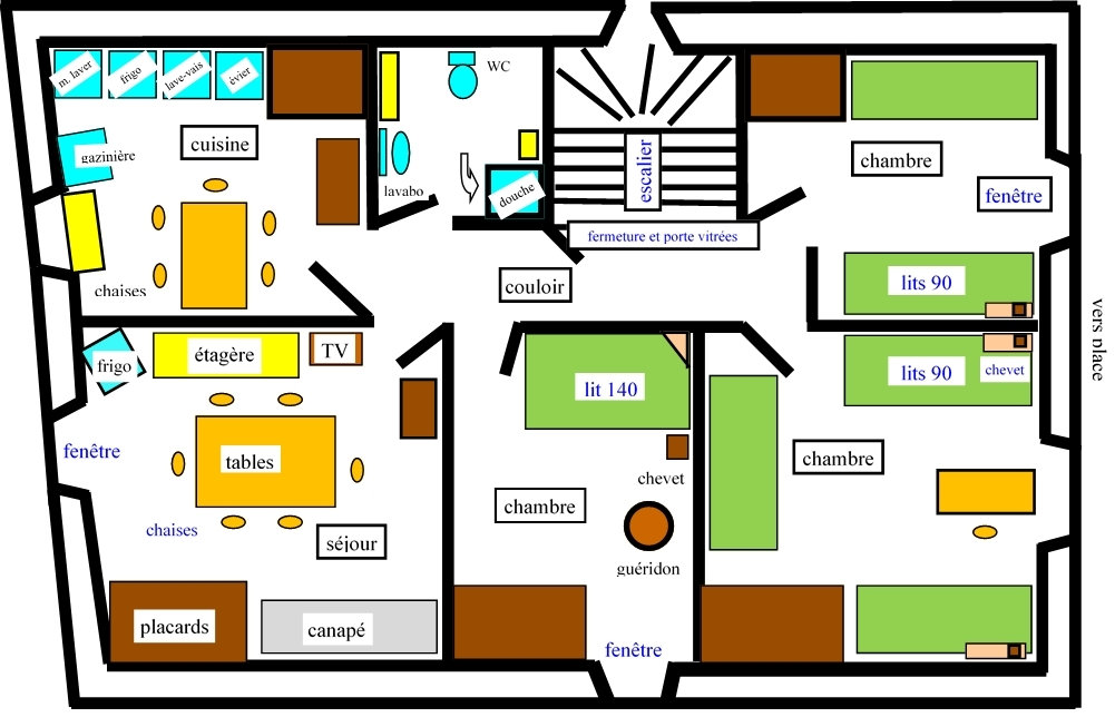 Le 2ème étage est très fonctionnel, vaste, avec 3 chambres dont 2 spacieuses, une grande cuisine bien équipée et un séjour agréable ou il y fait bon vivre. Pas de problème de parking et environnement très beau avec cette magnifique place et sa fontaine. On trouve dans ce village, le calme et la sérénité. Nous revenons l'année prochaine."