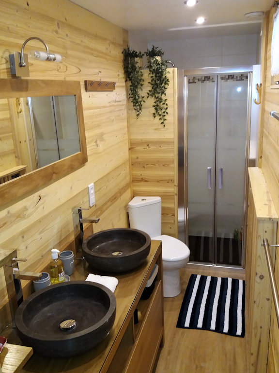 Superbe appartement très bien aménagé, neuf, propre avec une jolie déco. Ce logement est très bien équipé, juste devant la baie une petite terrasse a été aménagée et vous pouvez bénéficier sur le côté du chalet d'une autre terrasse qui peut être partagée. Les propriétaires sont très accueillants, bienveillants. Ils nous ont laissé leur garage pour garer nos deux moto. Une halte ressouçante sur la Route des Grandes Alpes.