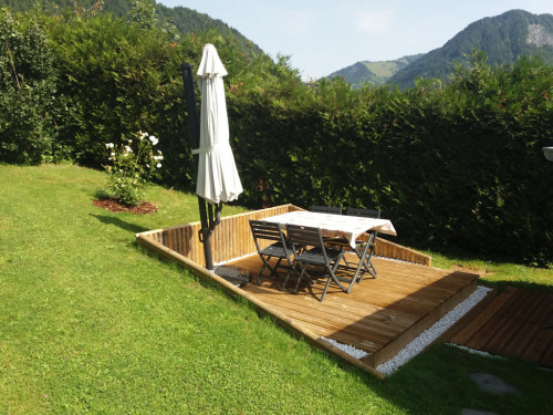 Bernadette et Alain vous proposent un appartement de 35 m², tout rénové, 2 pièces cuisine, au rez-de-chaussée de notre chalet avec un parking privé.