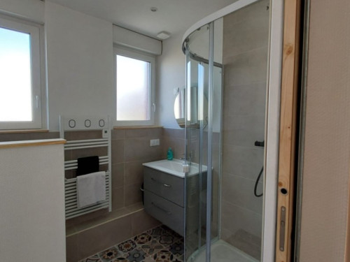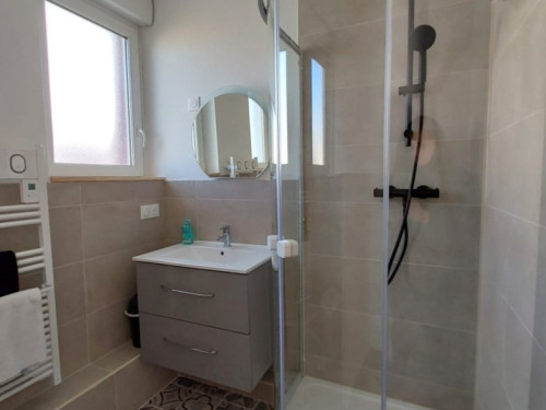 - Espace buanderie avec lave-linge et sèche-linge en accès libre.