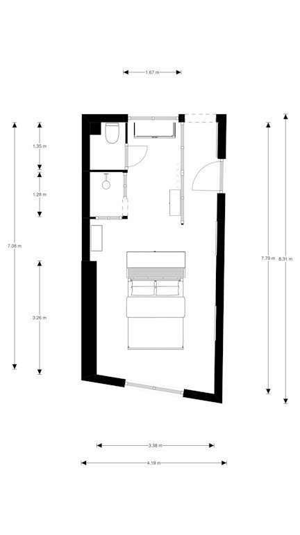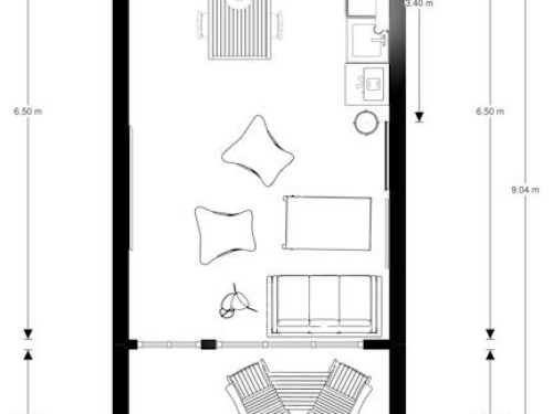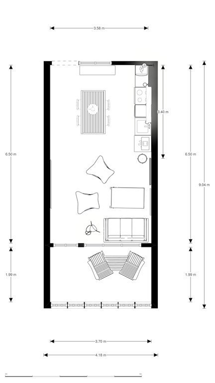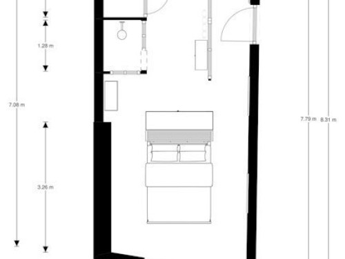 L'appartement, d'environ 55 m², est composé d’une loggia aux fenêtres à ouverture intégrale, d’un séjour / cuisine de 25 m², d’une chambre et salle de bain annexe de 22 m².