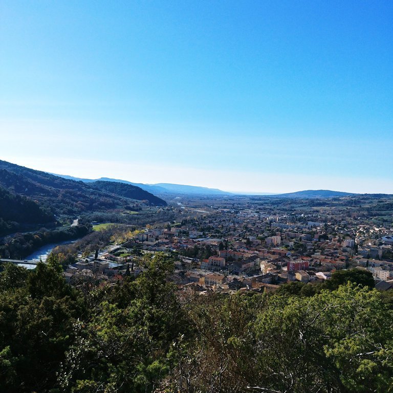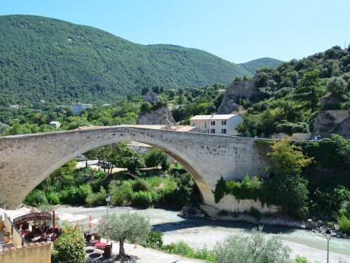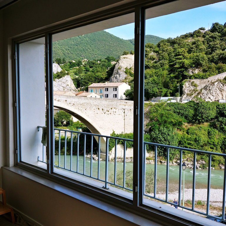 La loggia, exposée plein sud, donne sur le Pont Roman et la région montagneuse. Depuis la fenêtre latérale, on peut observer Nyons qui revêt de belles couleurs chaudes au coucher du soleil.