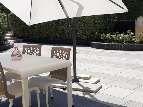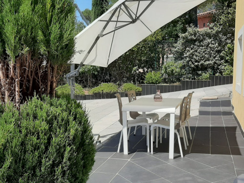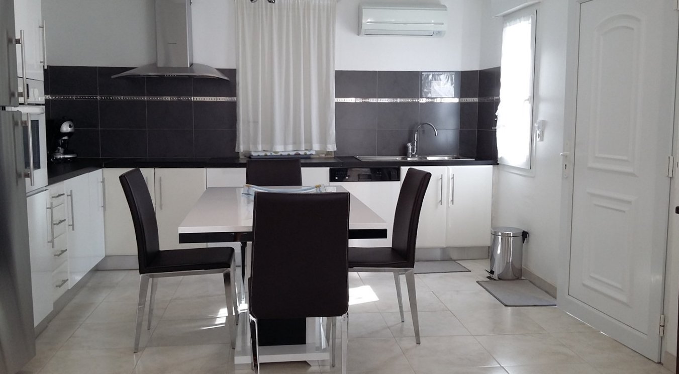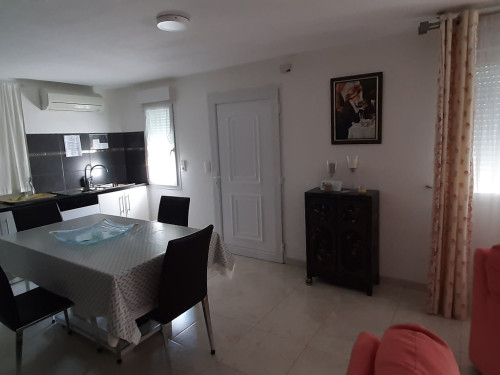 Appartement moderne de vacances 72 m², tout confort, climatisé, 5 couchages maximum avec piscine privée pour les vacanciers de ce logement, situé au rez-de-chaussée de la villa des propriétaires.