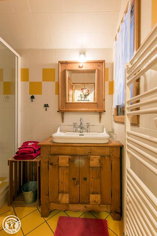 Salle de bains 1 : Douche, Lavabo, Sèche-cheveux, Sèche-serviettes