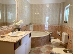 Cette maison de vacances possède 7 chambres, une télévision avec les chaînes du câble, une cuisine équipée, un lave-linge, ainsi que 4 salles de bains avec un bidet.