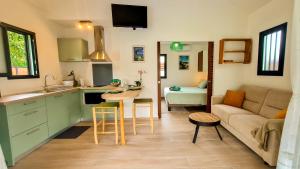Cette maison de vacances avec climatisation se compose de 1 chambre, d'un salon, d'une cuisine entièrement équipée avec un réfrigérateur et une machine à café, ainsi que de 1 salle de bains avec une douche et des articles de toilette gratuits. Des serviettes et du linge de lit sont à disposition.