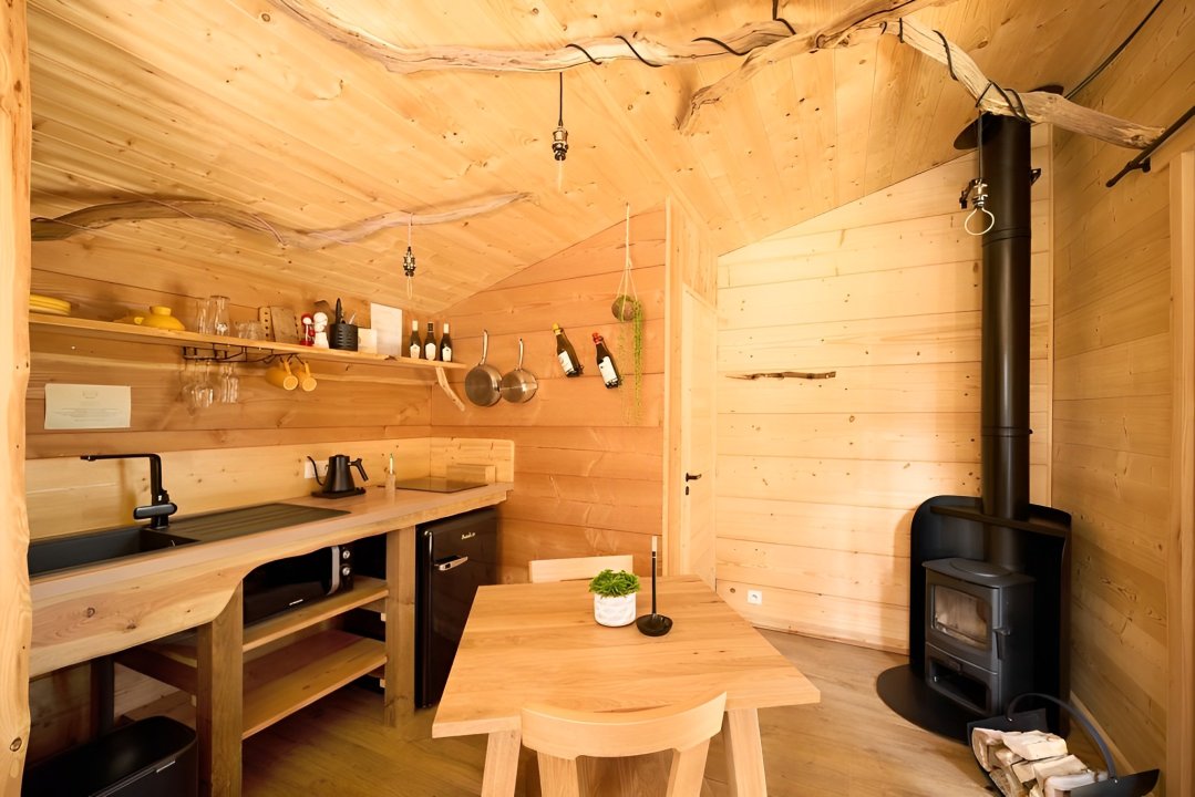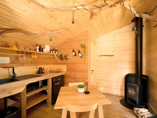 La cabane Forsythia vous accueille dans la magnifique vallée de la Loue pour un séjour de détente absolue. Aménagée pour deux personnes, elle offre tout le confort nécessaire pour une escapade romantique ou un moment de tranquillité. La décoration boisée crée une atmosphère cosy, complétée par un poêle à bois rustique et romantique.