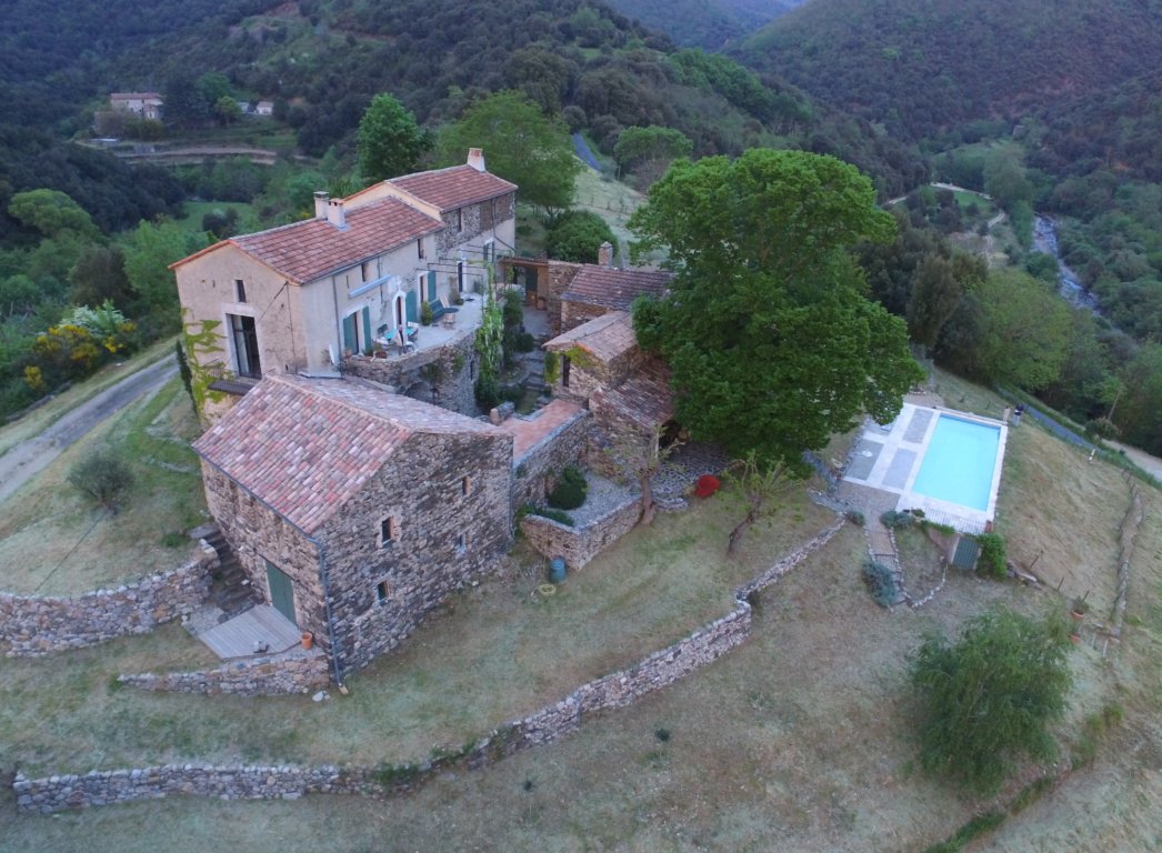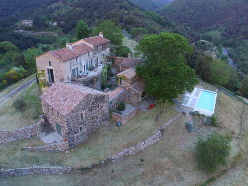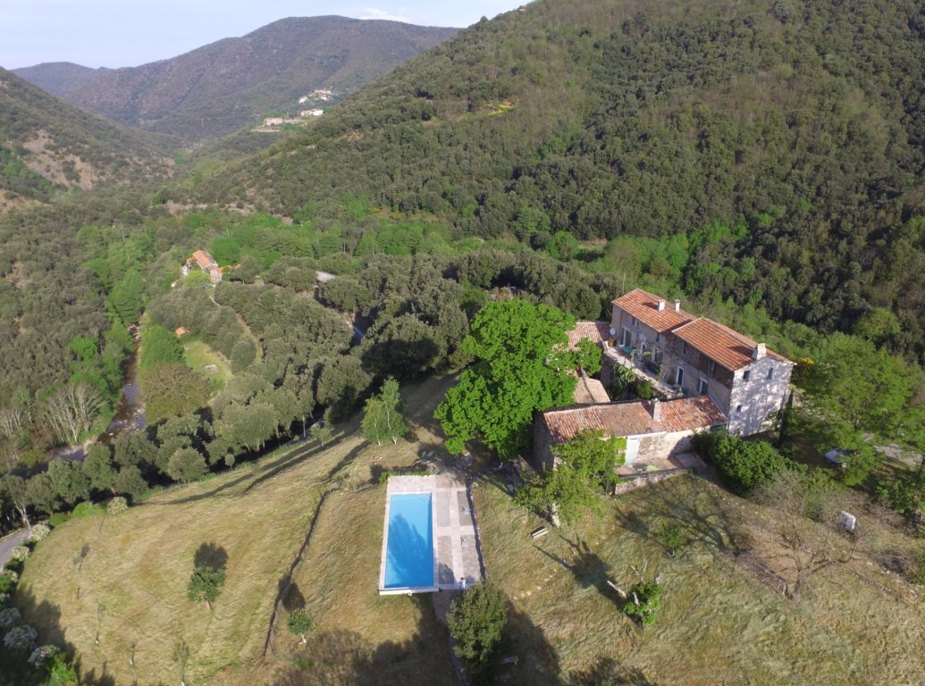 Dans une propriété de 10 hectares de prairies, de forêts et de rivières (sèches en été), dépendance d'un mas dominant datant de 1726, en petite montagne dans le parc national des Cévennes, classé au patrimoine de l'UNESCO.