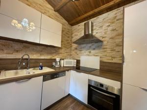 Ce chalet se compose de 1 chambre, d'un salon, d'une cuisine entièrement équipée avec un réfrigérateur et une machine à café, ainsi que de 1 salle de bains avec une douche et un bain à remous. Des serviettes et du linge de lit sont à votre disposition.