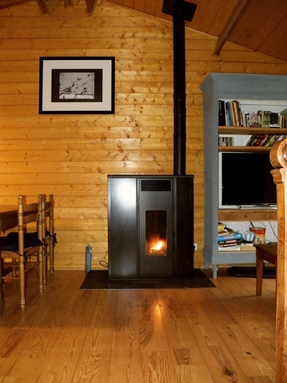 Chauffage : Le chalet est équipé d' un poêle à granules (pellets).