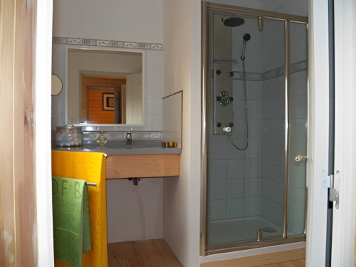 En hiver, chauffage par poêle à granules (pellets) et par sèche serviettes dans salles d'eau