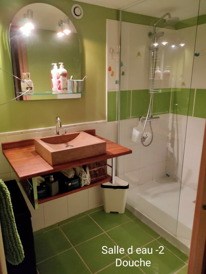 Salle de bains 2 : Douche à l'italienne, Lavabo, Sèche-cheveux